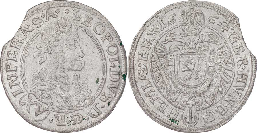 XV Krejcar 1664, Praha-Margalík, MKČ.1407, Nech.147, jako Höll.64.3.6, ale koruna bez stuh, 6.343g, krajový střížek, nep.skvrnky R!