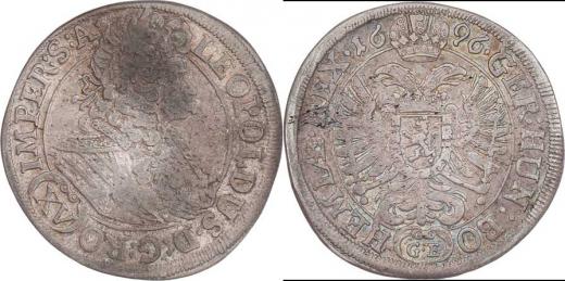 XV Krejcar 1696, Praha-Egerer, MKČ.1411a, Nech.157, Höll.96.1.2, 5.796g, pěkná patina R!