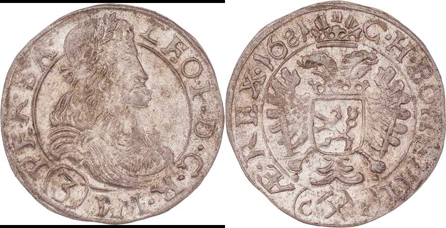 3 Krejcar 1681, K.Hora-Krahe, Nech.297, MKČ.1454, 1.777g, nep.nedor., pěkná patina