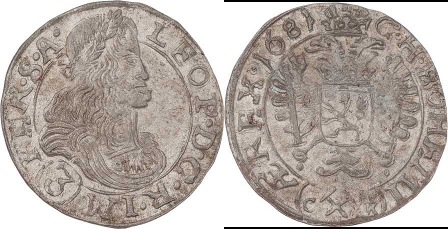 3 Krejcar 1681, K.Hora-Krahe, Nech.297, MKČ.1454, 1.680g, nep.nedor., nep.dvojráz, pěkná patina, téměř