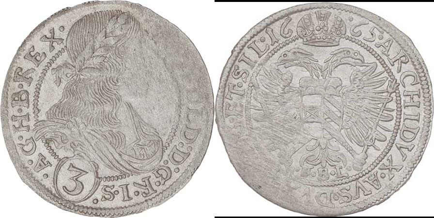 3 Krejcar 1665, Kladsko-Lisola, Nech.977, MKČ.1647a, 1.559g, nedor. RR!