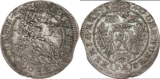 3 Krejcar 1710, Praha-provizorium, J.7b, MKČ.1723, 1.281g, dr.vady materiálu, krajový střížek, patina