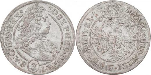 3 Krejcar 1706, Vratislav-Nowak, MKČ.1758, ČS.1068, 1.715g, nep.nedor., téměř