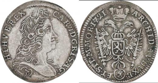 3 Krejcar 1721, Praha-Scharff, J.11c, MKČ.1836, 1.627g, nep.exc., pěkná patina