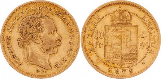 4 Zlatník 1878 KB (pouze 15.000 ks), 3.189g, nep.hr., nep.rysky, pěkná patina R!