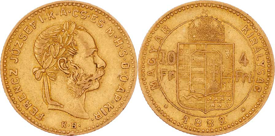 4 Zlatník 1882 KB (pouze 13.000 ks), 3.197g, dr.hr., nep.rysky, pěkná patina R!
