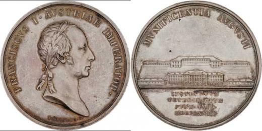 Harnisch - Otevření veterinární kliniky ve Vídni 1823 - poprsí zprava, opis / budovy kliniky, 4-řádk.nápis a opis, Sign., Ag 50mm, 43.826g, dr.hr., dr.rysky R!