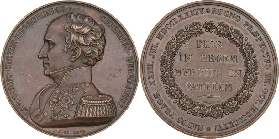 Durand A.P. - portrétní medaile 1835 - poprsí zleva, latinský opis / 4-řádk.nápis ve věnci a opis, Sign., patinovaný bronz 51 mm, Don.3284, dr.hr., dr.rysky