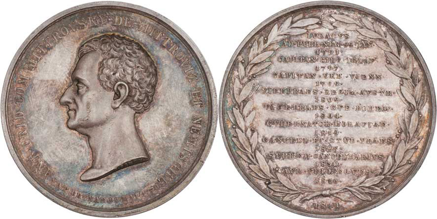 AR životopisná medaile (1815 morav. gubernátor) 1841 - hlava zleva, opis / 19-řádk.nápis ve věnci, Sign. Schön, 50mm, 43.764g, BPM.283, Don.3606, krásná pat.