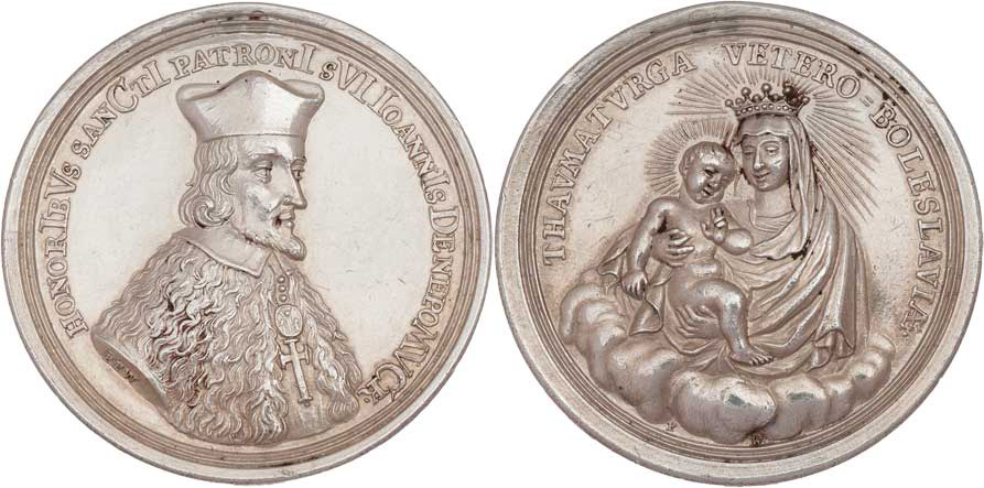 Blahoslavení Jana Nepomuckého 1721, poprsí zprava, opis/ Staroboleslavská Madona, opis, Sign.P.P.Werner, Ag 44mm, 29.426g, Don.4648, Přib.260, nep.rys., téměř