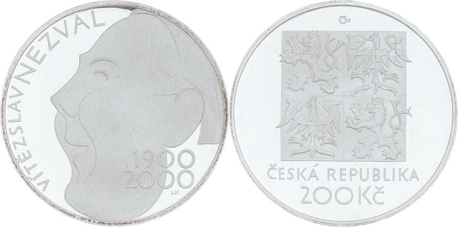 200 Kč 2000 - Vítězslav Nezval, KM.51 (Ag900, 13.0g, 3.200 ks), kapsle, etue, karta