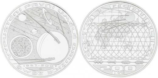 200 Kč 2007 - Sputnik - první umělá družice Země, KM.94 (Ag900, 13.0g, 14.800ks), kapsle, etue, karta
