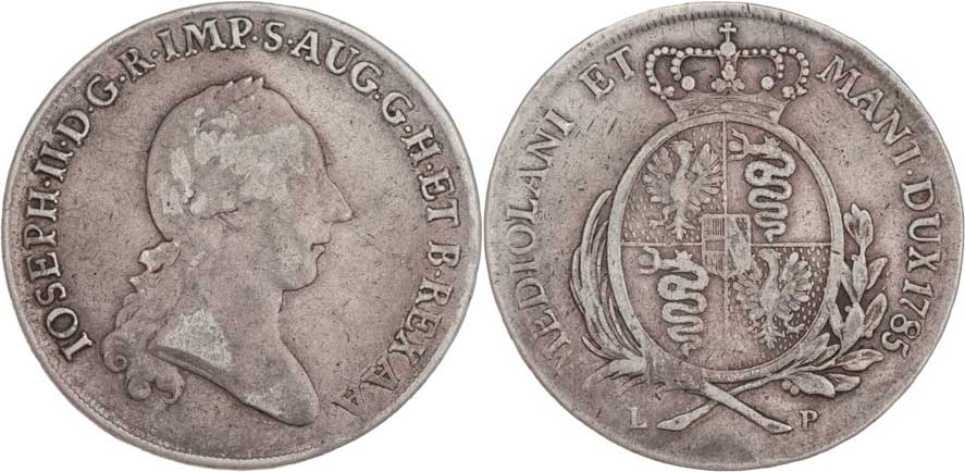 Scudo 1785 LB, Milán, P.37, Cr.45, 22.693g, stopa po oušku, nep.hr., nep.rysky, patina R!