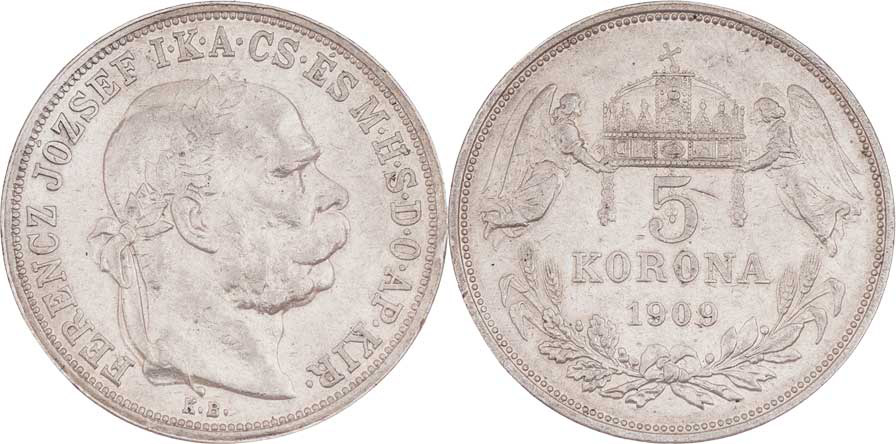5 Koruna 1909 KB, 23.977g, nep.hr., dr.rysky, pěkná patina