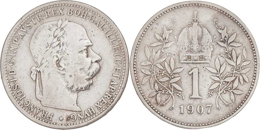 Koruna 1907, 4.865g, dr.hr., dr.rysky RR!