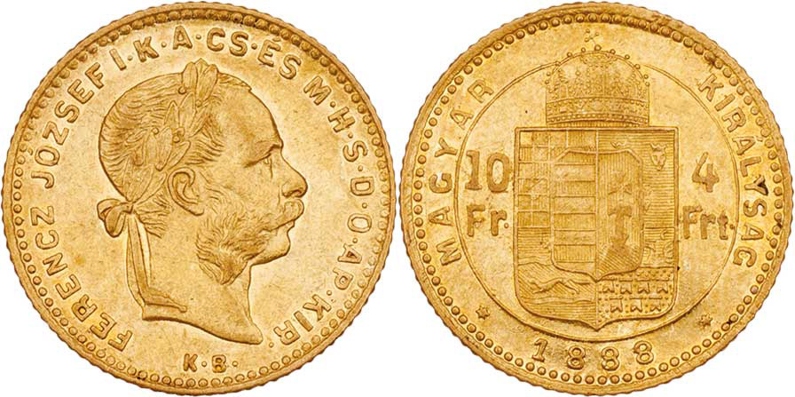 4 Zlatník 1888 KB (pouze 49.000 ks), 3.211g, nep.hr., nep.rysky, téměř R!