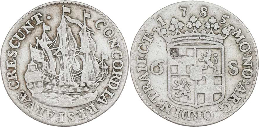 6 Stuiver 1785, KM.101 (Ag583), 4.585g, vada mater. v aversu, nep.rysky, pěkná patina