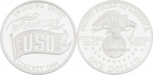 Dolar 1991 S - 50 let USO, KM.232 (Ag925, 27.1g, 321.275 ks), kapsle