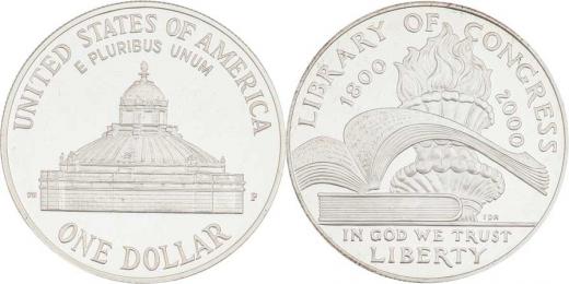 Dolar 2000 P - 200 let Knihovny kongresu, KM.311 (Ag900, 26.7g), kapsle, luxusní etue, certifikát