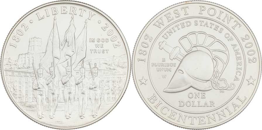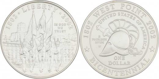 Dolar 2002 W - 200 let Vojenské akademie West Point, KM.338 (Ag900, 26.7g), kapsle