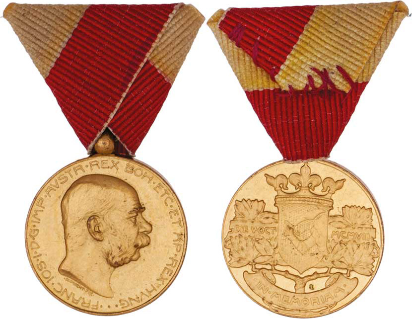 Bosensko-hercegovská pamětní medaile - miniatura, jako Marko.410b, jako VM.41-B, zlacená, původní stuha