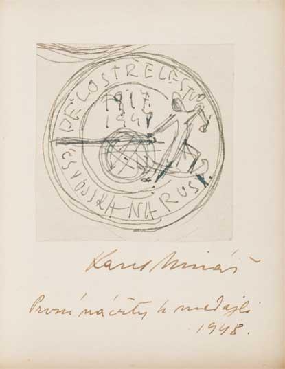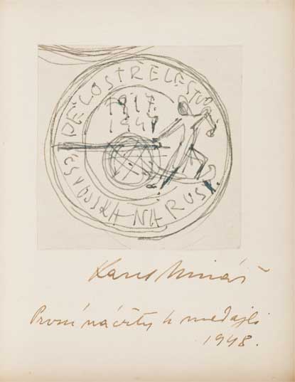 Dělostřelectvo čs.vojska na Rusi - stříbrný jednostr. odražek aversu medaile na řetízku, Punc., Sign.MK, krabička s pův.nákresy medaile a podpisem autora RRR!