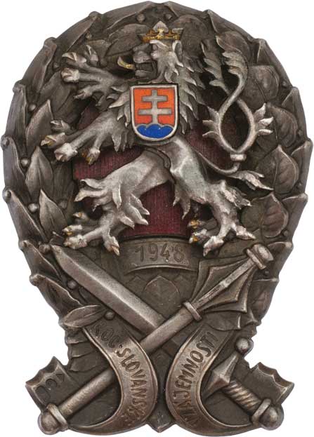 Vysoká válečná škola 1948 - ročník slovan.vzájemnosti Bartko.21, Krubl.tab.2/9 (str.29), puncováno Ag900 na odznaku, matici i podložce, Sign.Karnet a Kyselý R!