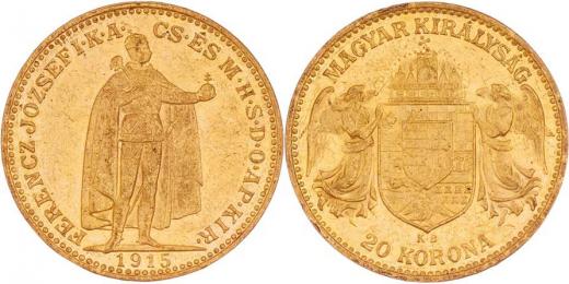 20 Koruna 1915 KB, 6.769g, dr.hr., dr.rysky, téměř