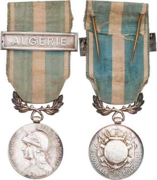 Koloniální universální pam. medaile, VFR.6, BB.337h, puncov. Ag, původní stuha se štítkem "ALGÉRIE"