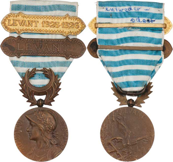 Syrsko-cilická pam. medaile 1922, VFR.20, BB.415ab, původní stuha, pásky "LEVANT" a "LEVANT 1925-1926"