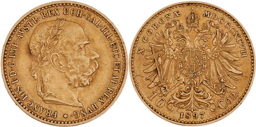 10 Koruna 1897, 3.373g, dr.hr., dr.škr., rysky, pěkná patina