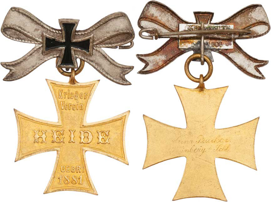 Heide (Schleswig-Holstein) 1881 - Neoficiální pamětní kříž veteránského spolku, 37x37 mm, Sign., kovový závěs s vyobrazením Železného kříže