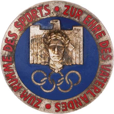 Olympijské hry - Berlin 1936 - odznak rozhodčího, Sign."W.A.Co.München", smaltovaný bronz 42 mm se zavíracím špendlíkem R!