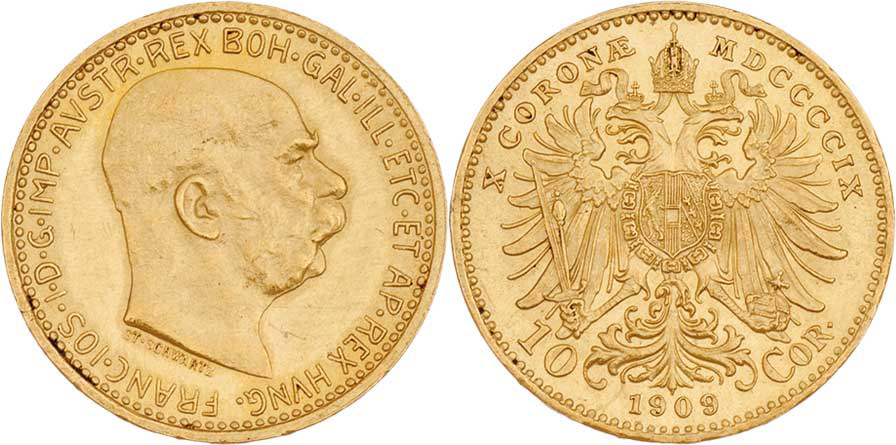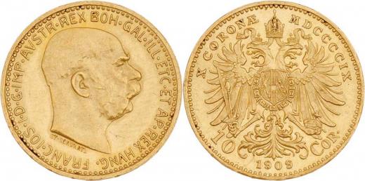 10 Koruna 1909 - Schwartz, 3.386g, nep.hr., nep.rysky