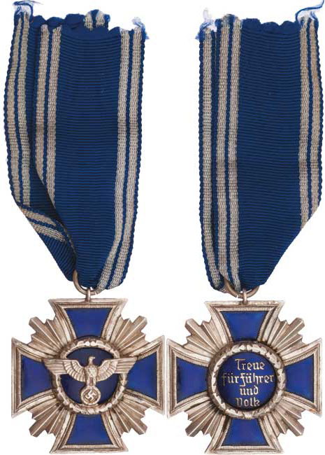NSDAP - kříž za 15 let služby, BB.283, ND.6.03.08.b, Nimmergut.3764, modře smaltovaný postříbřený bronz 42 mm s původní stuhou, 39.421g R!