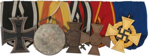 Železný kříž II.třídy, Medaile za zásluhy (zinek), Kříž 1914-1918, Badenský kříž za 15 let služby a Kříž za 40 let služby, spona 5ks R!
