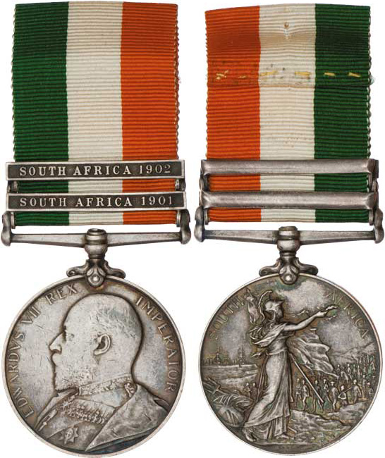 Edward VII. - Královská jihoafrická medaile, K-K.C30, Joslin.129, udělení "Lt.L.B.MILLINGTON R.E.", na stuze pásky "SOUTH AFRICA 1901" a "SOUTH AFRICA 1902"