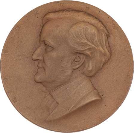 Richard Wagner - poprsí zleva, opis, b.l., Nesign., patinovaný jednostranný bronz 40 mm