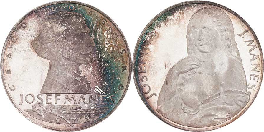 AR odražek pětidukátu 1971 - Josef Mánes, písmo / Josefína, opis, Sign., 33mm, 8.837g, k.59, nep.hr., nep.rysky, patina
