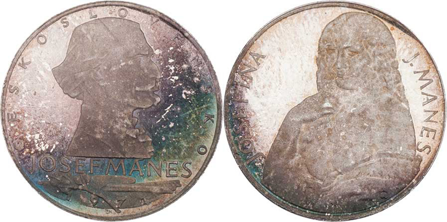 AR odražek dukátu 1971 - Josef Mánes, písmo / Josefína, opis, Sign., 20mm, 3.547g, k.59, nep.rysky, patina