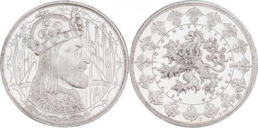 Největší osobnosti českého národa - Karel IV. b.l. - poprsí zprava, most / český lev, opis, kruh orlic, Sign., Ag999, 34mm, 15.032g, kapsle