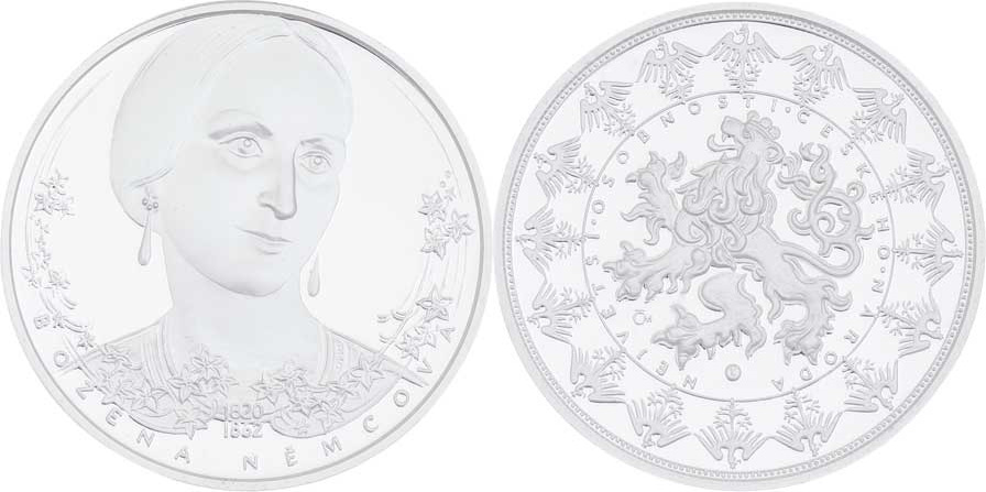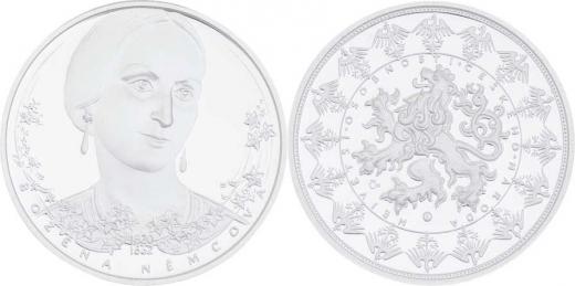 Největší osobnosti českého národa - Božena Němcová b.l. - portrét, věnec, opis / český lev, opis, kruh orlic, Sign., Ag999, 40mm, (29.1g), kapsle