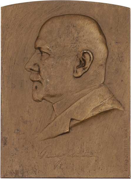Paul rytíř von Schoeller (1853 - 1916) - poprsí zleva a faksimile podpisu, Sign., patinov. bronz 54x75 mm