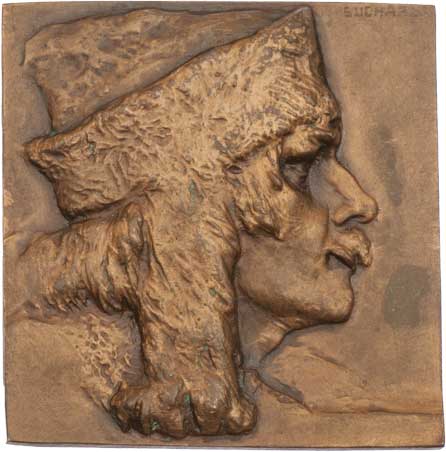 Kníže Přemysl -jednostranná plaketa b.l.(1900) - hlava zprava v čepici, Sign., patin. bronz 54x55 mm, MZČ.200/14