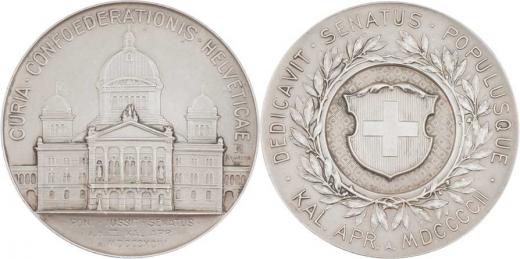 Justiční palác v Bernu 1894/1902 - průčelí paláce, opis a nápis / znak konfederace, vavřín.věnec a opis, Sign.Nomberg, Nepunc., Ag 55mm, 63.229g, nep.hr.