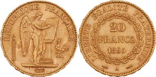 20 Frank 1895 A, KM.825 (Au900), 6.450g, nep.hr., nep.rysky, pěkná patina, téměř