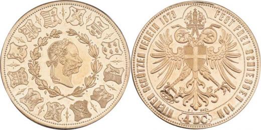 4 Dukát 1873 - jubilejní spolkové střelby vídeňského střeleckého spolku - novoražba značená "COPY", zlacený bronz 38mm, 23.851g