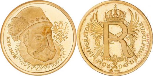Rudolf II. (1552 - 1612) b.l. - hlava s kloboukem a okružím zprava, znak, opis/ korunované "R", opis, Nesign., Au585, 20mm, 3.522g, etue, certif. (č.286)
