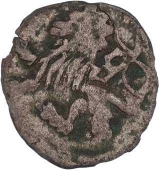 Haléř b.l., český lev s písm."G", bez hvězdičky, ražba z let 1435 - 1454 (po smrti Půty z Častolovic), Nech.7, nep.nedor., patina