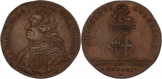 Roettiers - AE pamětní jeton na rok 1764 - poprsí zleva, opis / korunovaný znak, opis a nápis, Sign., Cu 32mm, 12.598g, M.neuv., H.neuv., pěkná patina